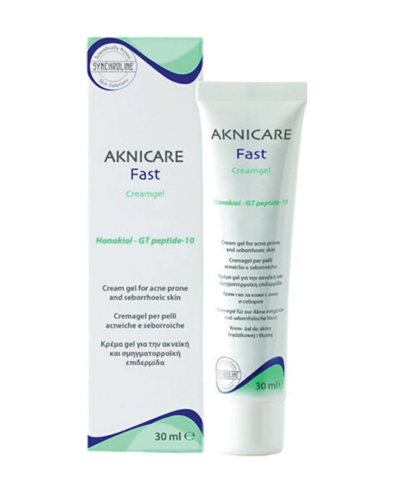 Aknicare Fast Creamgel Colored emulsion, specifically designed to control and alleviate acne symptoms and achieve an effective covering effect that decreases the visibility of acne lesions. It also has a moisturizing action and a positive matting effect